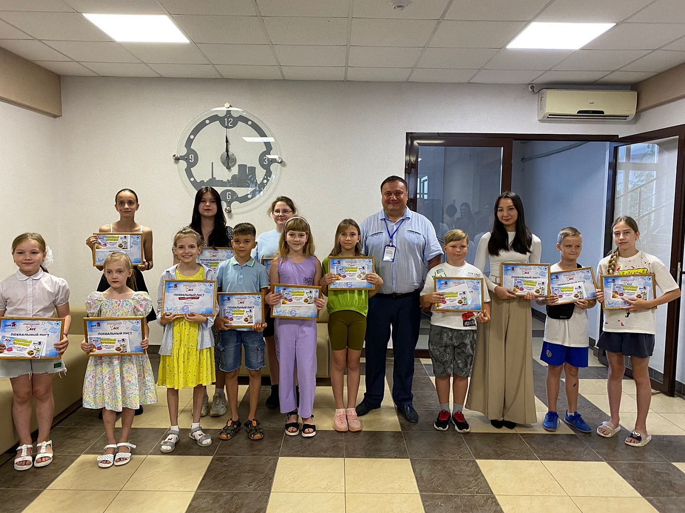 23 школьника, показавших отличные результаты в учебе были приглашены на завод, где им лично генеральный директор Владимир Николаевич Гермашов вручил похвальные грамоты и подарки - билеты на аттракционы в Парк «Победа» и денежный сертификат на поход в пиццерию. Детям подарки пришлись по вкусу, а что будет в следующем году, нам подскажут сами ребята в конце следующего года, заполнив опрос-анкету!