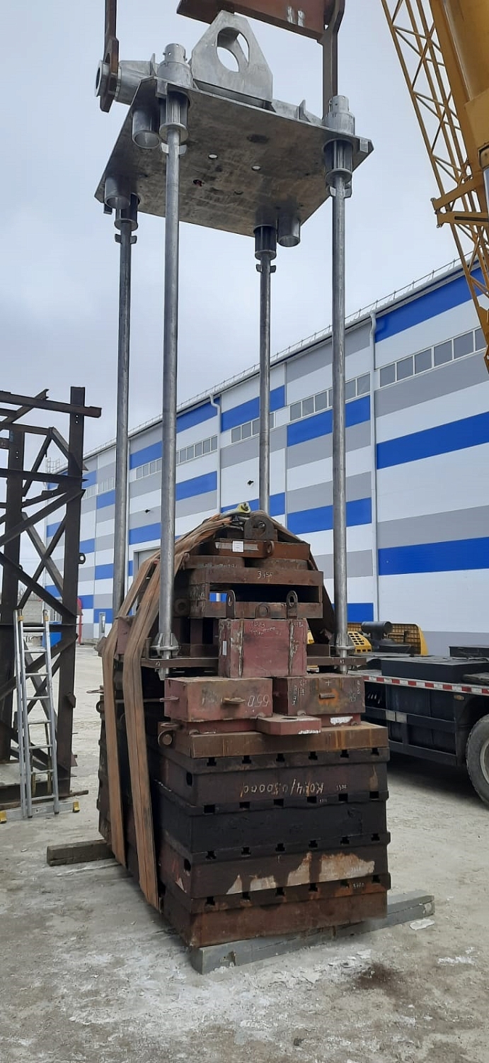 В результате испытаний была проведена проверка грузоподъемности, путем поднятия груза в 32 000 кг. Испытания подтвердили прочность Траверсы и ее элементов.