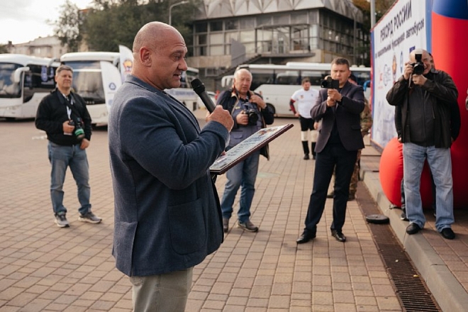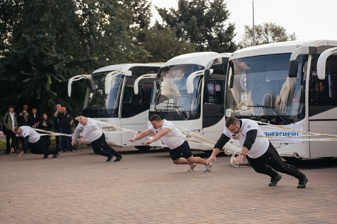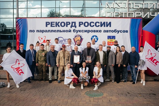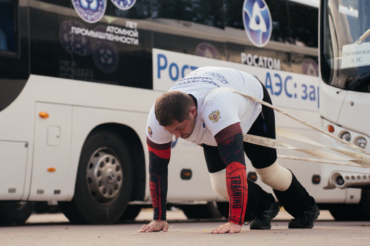 Движение «Сильнейшая нация мира» при поддержке ООО «Атомспецсервис» установили рекорд России по параллельной буксировке сцепки автобусов! Пять атлетов протащили пять автобусов общей массой 67,85 тонны на 20 метров за 48 секунд.