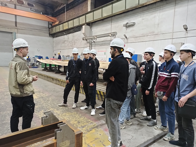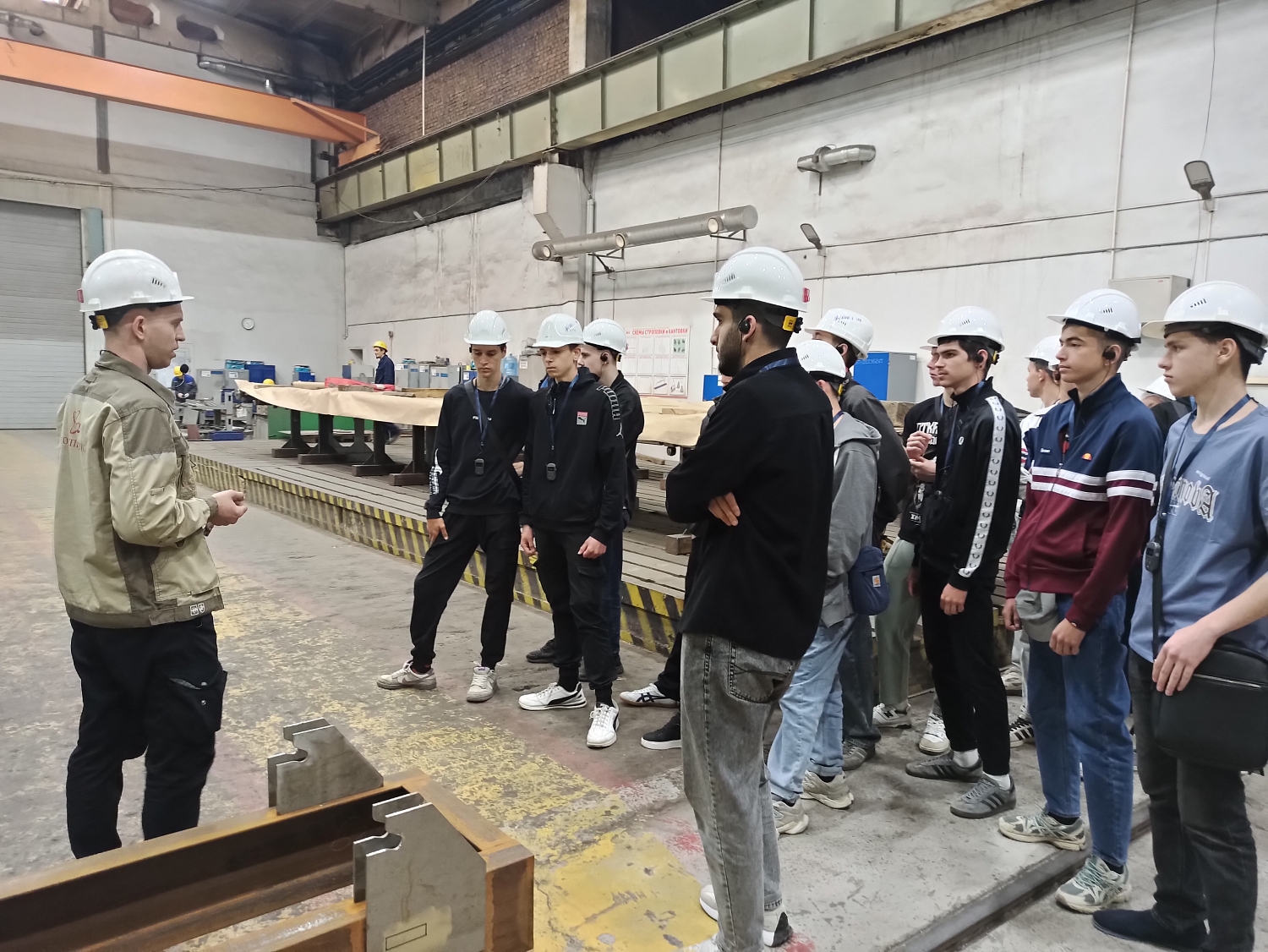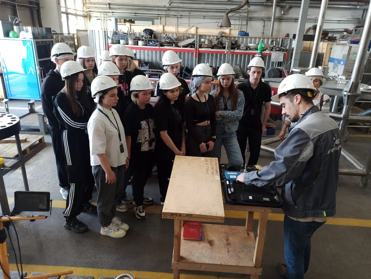Будущие контролеры ОТК увидели склад металла, термозаготовительный и механический цеха, а после на участке блоков ТЭН их встречал руководитель группы технического контроля Перегудов Андрей Владимирович. Он показал студентам инструмент, рассказал как им пользоваться и дал возможность почувствовать себя контролером ОТК, оценив работу сварщика.