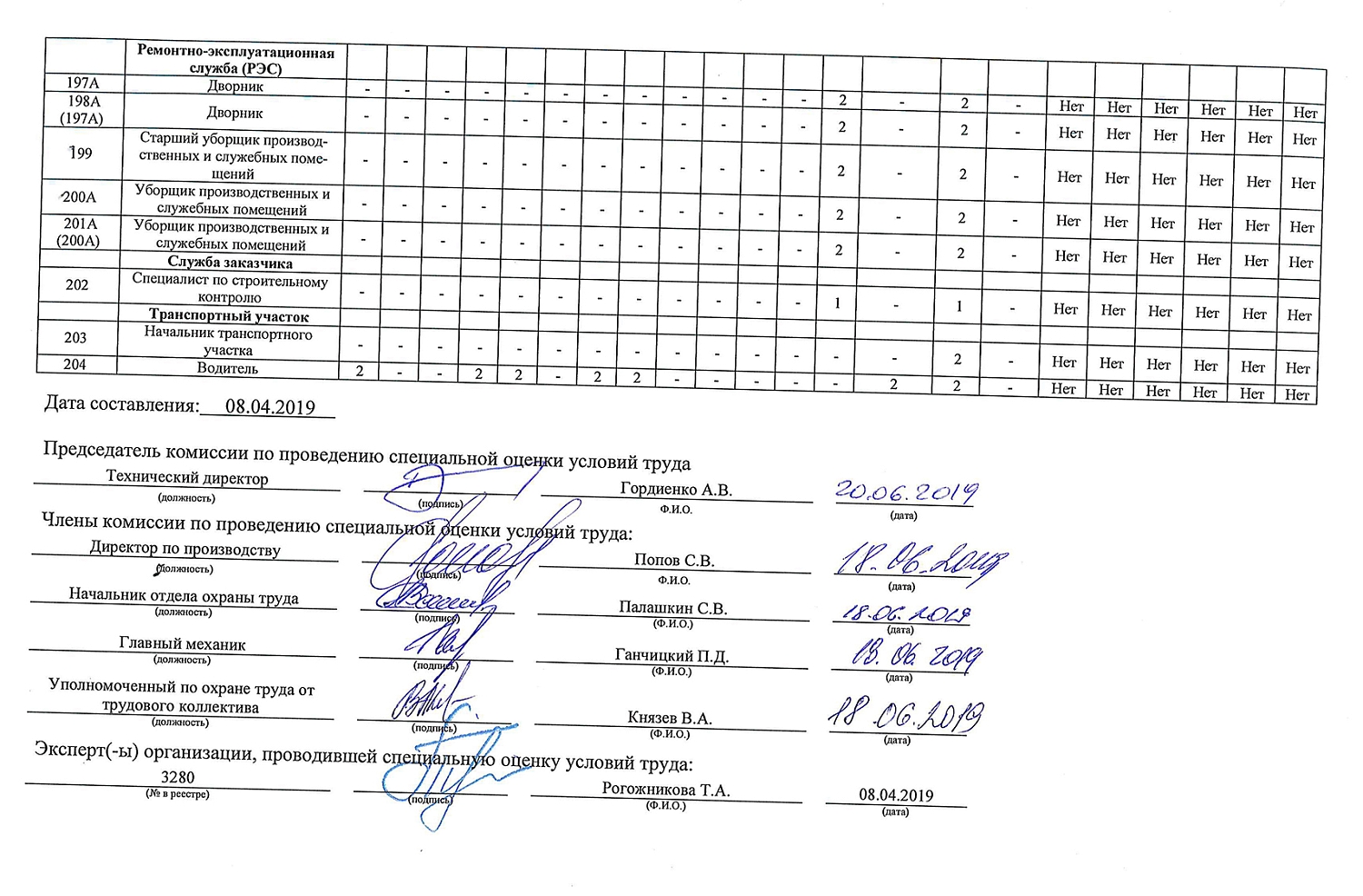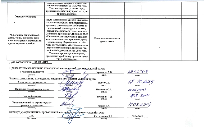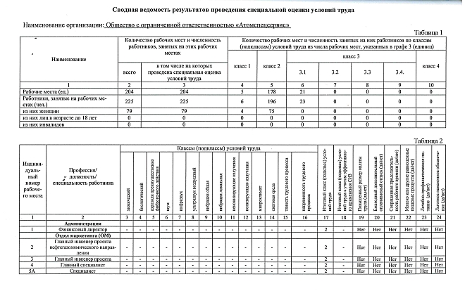 Проведена специальная оценка условий труда-2019