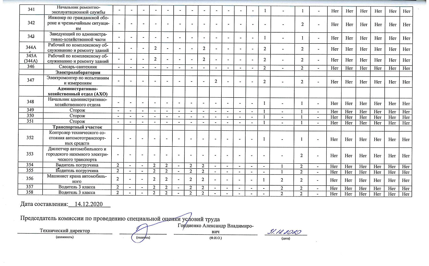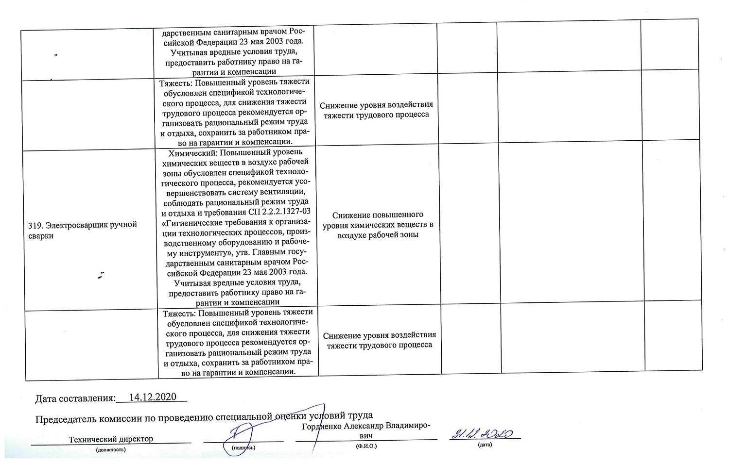 Проведена специальная оценка условий труда-2020