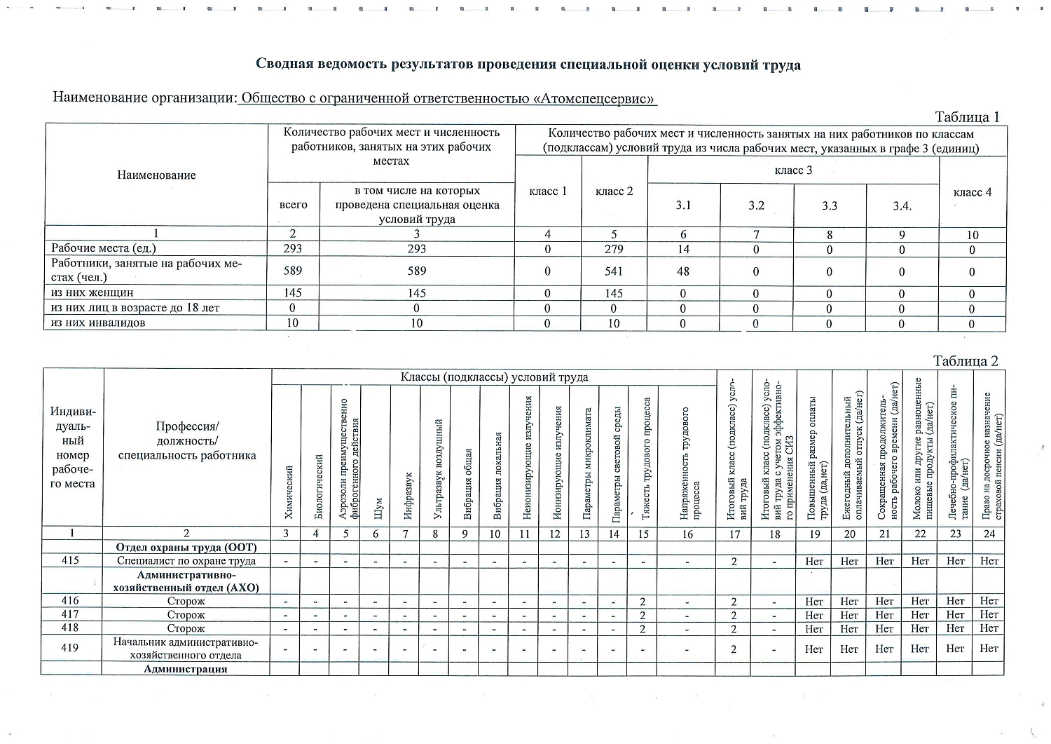 Такая оценка определяет условия труда этих рабочих мест и работающих на них сотрудников и позволяет установить класс (подкласс) условий труда.