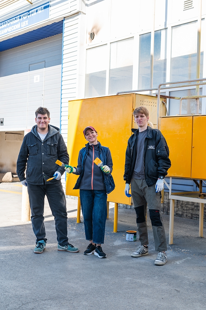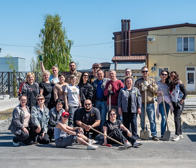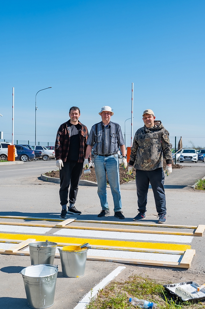 Отложив домашние дела сотрудники с энтузиазмом приняли участие в этом важном мероприятии. Покрасили бордюры, лавочки, перила, газовые трубы, нанесли новую разметку на парковках, побелили деревья, обновили пешеходные переходы, выкопали ямы под деревья, и разровняли тридцать тонн земли, собрали 22 биг-бэга строительного мусора, и вывезли 4 газели растительных остатков.♻